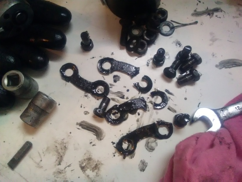Ensuite en ouvrant le pont, le constat est que les 8 boulons étaient desserrés et bougeaient à la main avec des traces de contact avec le carter.