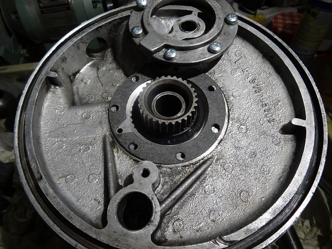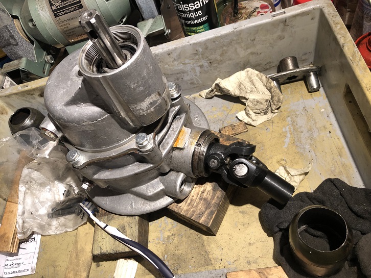 Du cotè boite, c'est un autre paire de manches. Je suis bloqué à 8mm du but et ça ne me plait pas du tout. Mais c'est le cardan neuf qui est le problème, pas la queue de pignon. Le cardan a encore une entrée ronde. La goupille rentre evidemment difficilement.