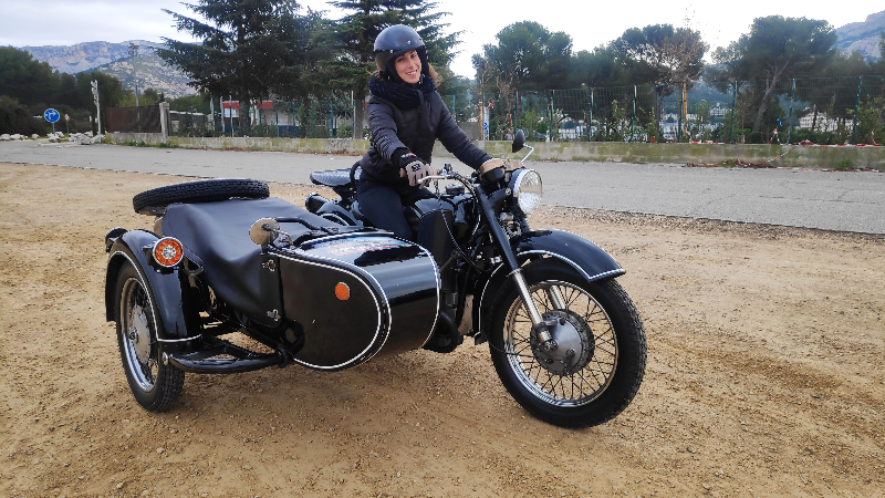 Ma fille la plus jeune a essayé le Dnepr, n'ayant jamais conduit de moto, ce fut pour elle une découverte.