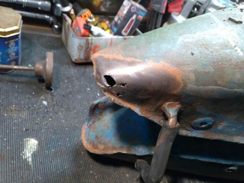 Supprimer les deux pattes avant, colmater la fuite à la résine et choucroute, et restomer l'intérieur.