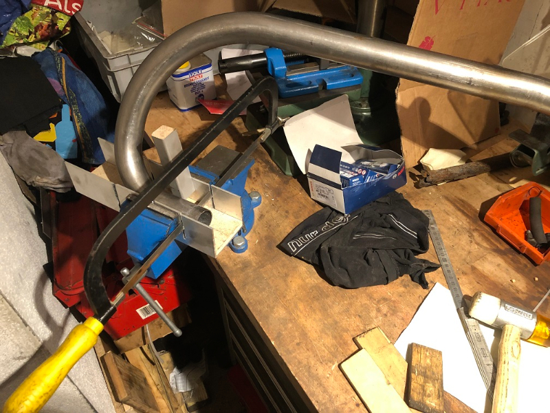 Les joies de couper un tube à la scie en essayant de rester droit.