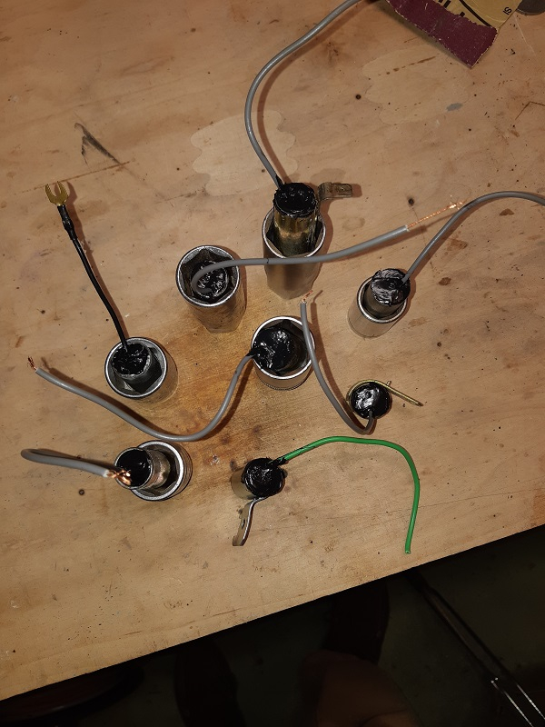 Sinon, pour passer le temps et parce que ça me titillait, je me suis amusé à refaire des condensateurs. La qualité des condensateurs est pourrie, ils claquent à peine sortis de la boite, j'avais vu des tutos, et j'avais un peu de temps, alors zou. J'ai récupéré de vieux condos chez un passionné de machines anciennes (DS Citroën), et je me suis lancé.