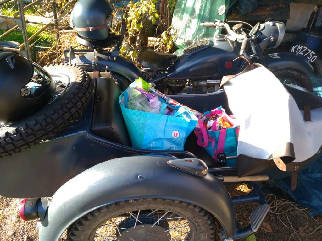 Ensuite un tour pour aller faire des courses, en side car. Ça rend la chose moins pénible.