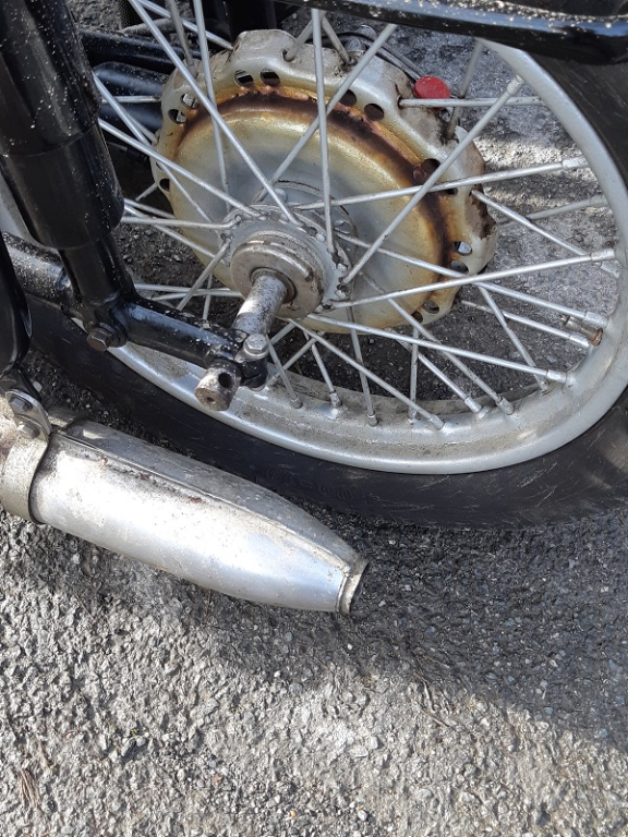 pourtant on voit sur une photo plus haut que le pneu est plein de coulures d'huile, mais vu que le pont était sec (à moins qu'il soit vraiment à sec !!), je pencherais pour une fuite d'huile au niveau des pompes à vélo déguisées en amortisseurs arrière (un prochain chantier).