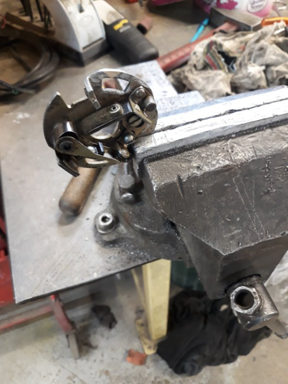 Rallonge de la tige du frein AR et correction des angles d'attaque sur les biellettes mais ça bute entre chape et bras de la pédale, va falloir resortir la meuleuse . . .
