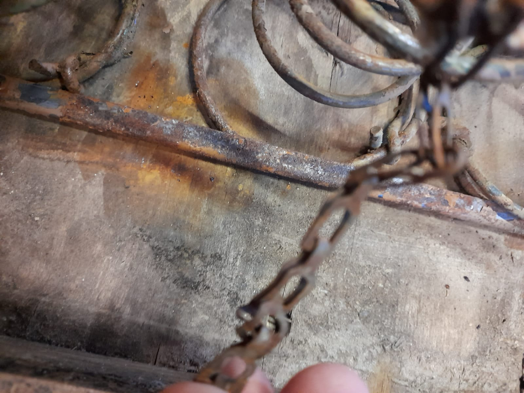 les ressorts étaient peints au couleur de la machine , et maintenues par des petites chainettes au support bois ...