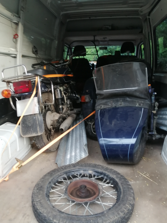 Fin de semaine, j'espère avoir de l'aide pour ramener l'autre du 12/93, car elle est sous bâche depuis 8 ans et je pense qu'une fois dégagée, les roues ne vont pas être très mobiles..., (celle là est moire et a son T de fourche).