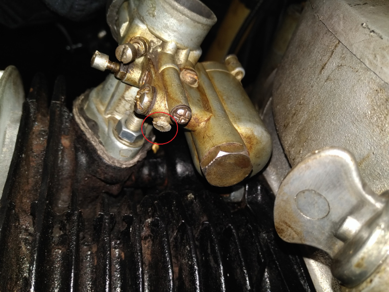 En regardant de plus près j'ai un orifice (juste à côté du bouchon du pointeau) qui est obstruée par ce qui semble être une goutte d'étain ou assimilé (voir cercle rouge de la photo...) Je ne pense pas que cela soit la montage d'origine
