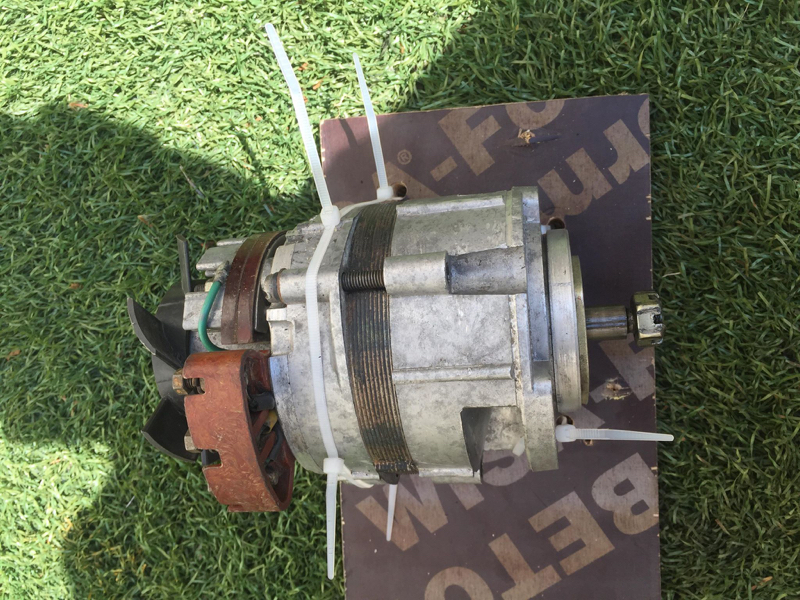 Voici une photo du montage fait (je l'ai fixé sur une place de bois pour éviter qu'avec la force de la perceuse il s'emballe et parte dans tout les sens.