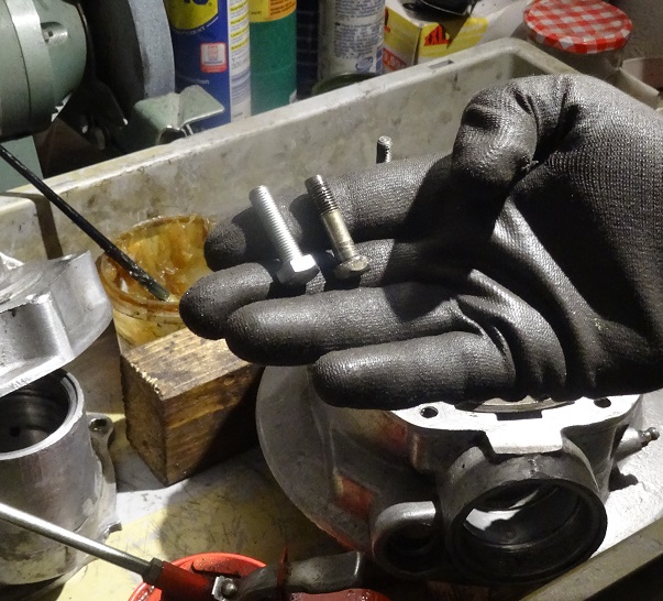 Remplacement des vis à pas fin d'origine M8 à tête M12 pourraves par des M8 modernes et en 10.9 s'il vous plaît (c'est ce que j'ai trouvé dans ma zoolerie, un coup de bol!