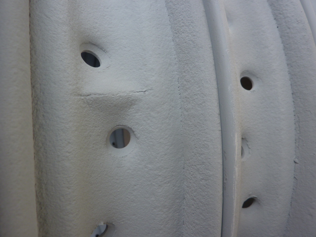 Premier souci, j'ai une jante qui va devoir être ressoudée, elle a des craquelures au fond des emboutis dont je vous ai déja parlé.
