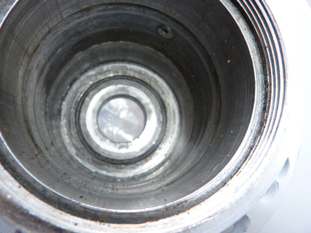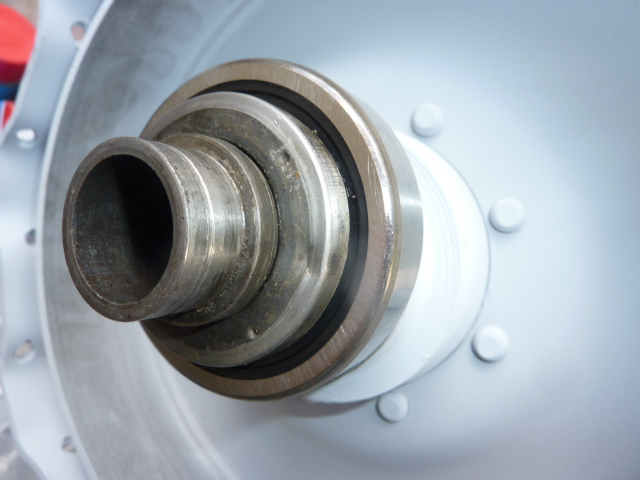 tout ceci devrait être dedans mais alors on verrait moins bien... il est clair que la coupelle va occuper tout l'espace libre devant les billes du roulement, et donc contribuer à le protéger. Je précise que je parle ici de l'espace "libre", visible de l'extérieur. ON voit bien sur la coupelle la trace de la partie qui est en appui sur le fond du moyeu. Tout ce qui est sur un diamètre plus important que la trace foncée est caché dans le moyeu.