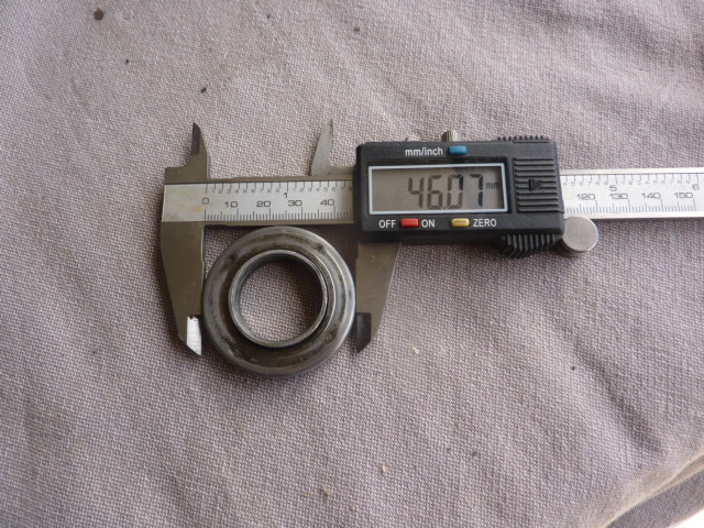 De profil, ça donne ça. l'épaisseur de la coupelle est de presque 7mm en revanche, la rondelle épaulée seule ne tient pas bien en place dans la réservation prévue pour l'ensemble (d'où l'intérêt du joint spi de 46 pour combler et faire appui).