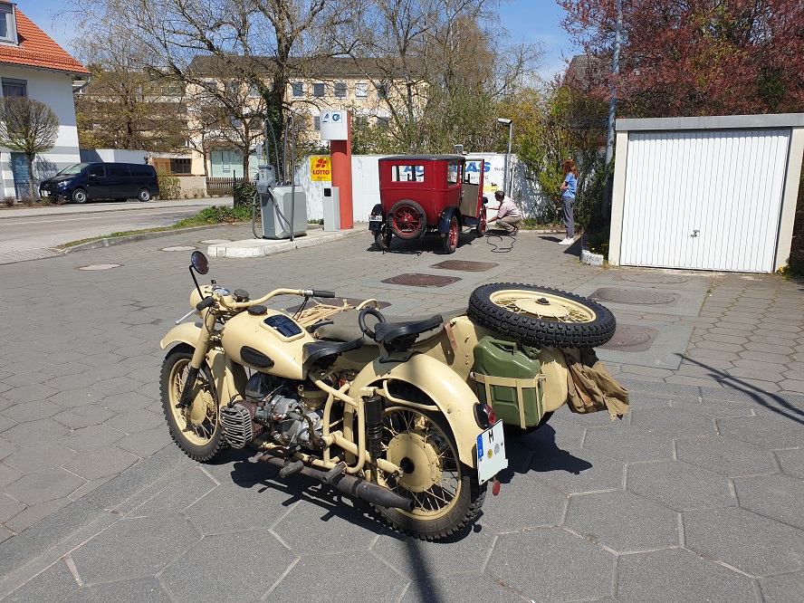 Ensuite, une superbe Ford de 1926 s'arrête pour aussi vérifier la pression de ses pneus. Là, aussi, on a là aussi bien discuté.