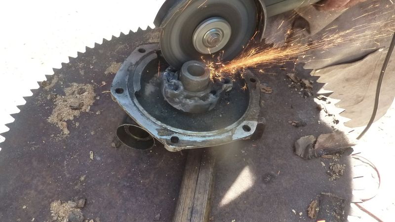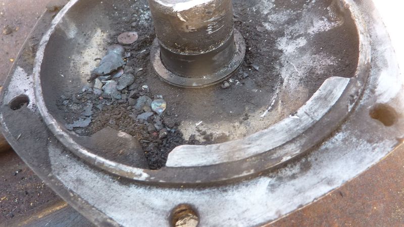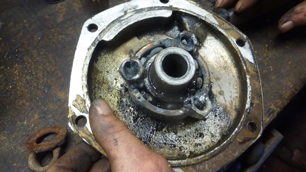 alors on l'a mis dans l'étau et on a tenté de tourner le roulement (les cages sont soudées), mais non, rien ne vient.