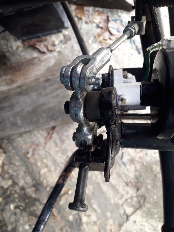 je cherche une photo du montage de la patte de retenue et butée du cable du frein panier.