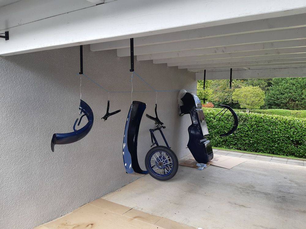 Il restera à le peindre en noir (hamerite ?) puis la couleur bleue par dessus, et je pourrai passer à l'intérieur, même motif, même punition.