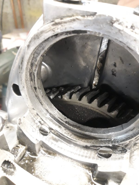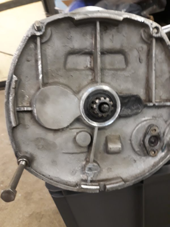 Je tombe la boite pour voir s'il y a des traces de frottement du volant moteur sur la boite : n'en n'a quelques unes . . .