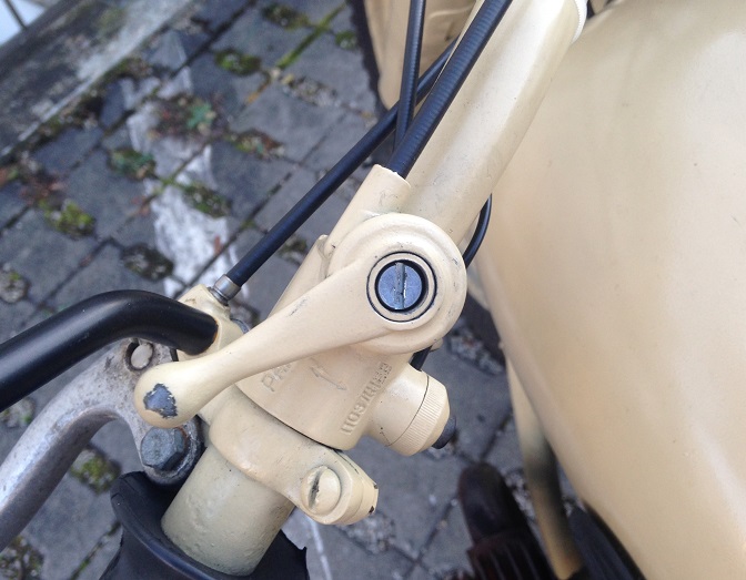 L'opération aurait pu être faite voici plusieurs semaines, MAIS, le câble de réglage d'avance acheté neuf chez Ural Hambourg a cassé au montage (le plomb côté poignée s'est fait la malle).