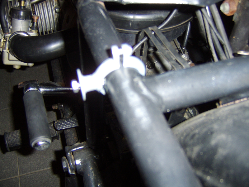 Je prévois de faire des caches latéraux afin de cacher en partie la batterie et le redresseur et une partie du faisceau éléctrique.Pour ce faire,j'ai découpé deux plaques d'alu de 1mm d'épaisseur et de 35X25 cm.Pour les fixer,j'ai acheté des attaches-tuyaux de 30mm,(comme pour le sanitaire) et j'ai passé une vis et un écrou de 5mm qui prendra la plaque en sandwiche avec une rondelle.Comme ça,je peux fixer proprement mes plaques sans plastiques ni trous dans le cadre.Si cela peut aider quelqu'un.....