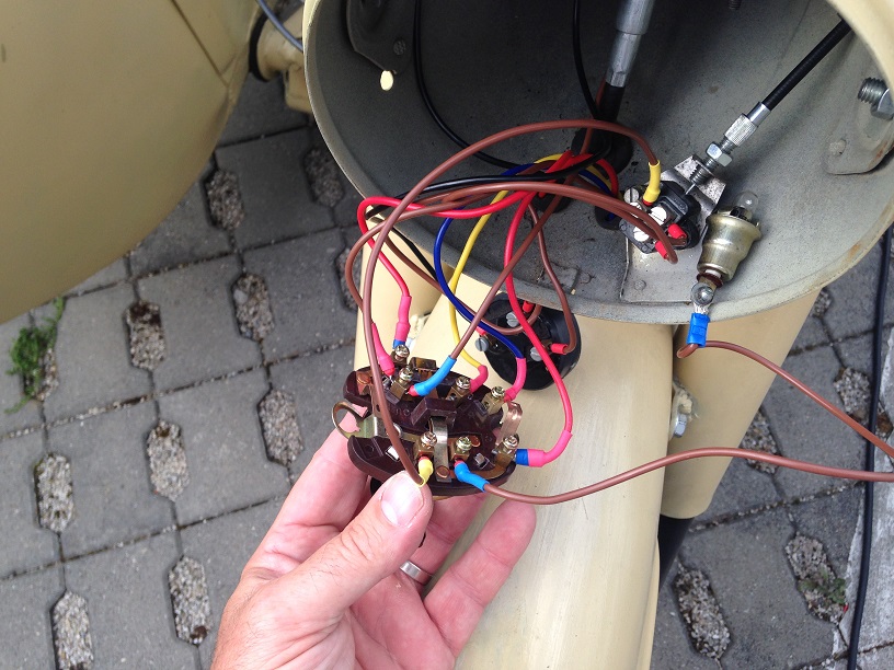 Ou remettre tout cela dans le phare, pour une 10 aine ca devrait le faire, ou petite boite de dérivation en fer avec joint caoutchouc, mais va va dénaturer la mémére ... Elle a mon age alors, vu qu'elle n'aura jamais de clignotants, ni de commodo moderne, je mettrai certainement un fusible a l'arrivée générale pour sécurite . Mais pour le contacteur a cle général, que ca soit connection par petite vis et fils etamés ou non ou des cosses, ca rouille rapidement quand meme . Peut etre qu'en bricolant des bouts de gaines thermo soudées sur ces connections ca ralentirait la chose , mais bonjour le démontage au cas ou .