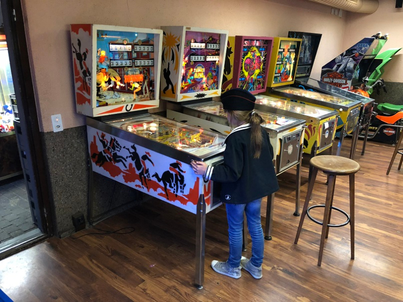 J'ai même pu ici initier l'art du flipper à ma benjamine sur de vraies píéces de musée (qui font kling, kling, kling, klong, klong, klong)