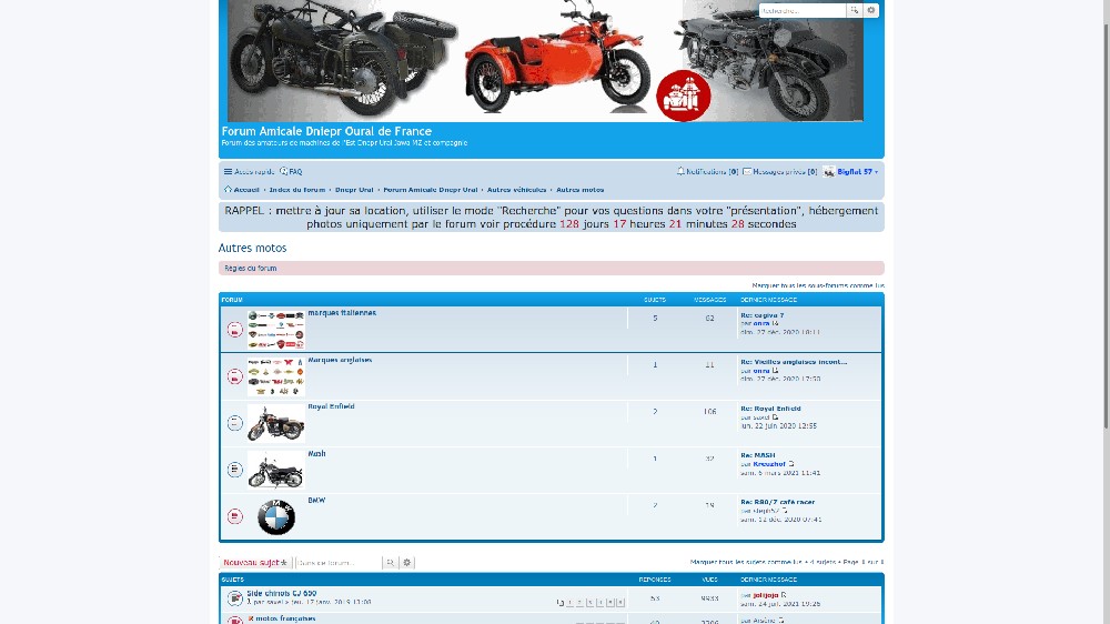 Oui je sais, mais je pensais à ce genre d'entête avec le logo.Guy et Claudette a écrit :On est déjà dans la rubrique des autres marques, ou alors j'ai rien comprisBigflat 57 a écrit :Effectivement, on peut se poser la question ou bien utiliser la rubrique des autres marques http://forum.dnepr-ural.fr/viewforum.php?f=65.