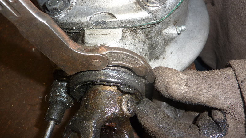 Autre moment de rigolade, enlever la bague de fermeture du pont, qui reçoit la cloche au dessus du cardan.
