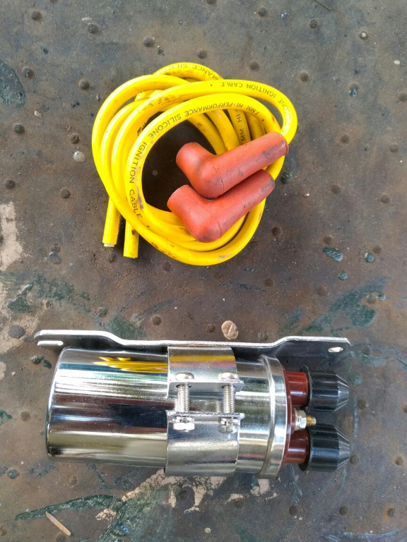 Certains ont utilisé une bobine Harley jaune comme quelques deuchistes avec allumage électronique , une bobine noire 2CV (placée sous le réservoir) avec rupteurs de qualité et condensateur électronique font aussi très bien le travail.