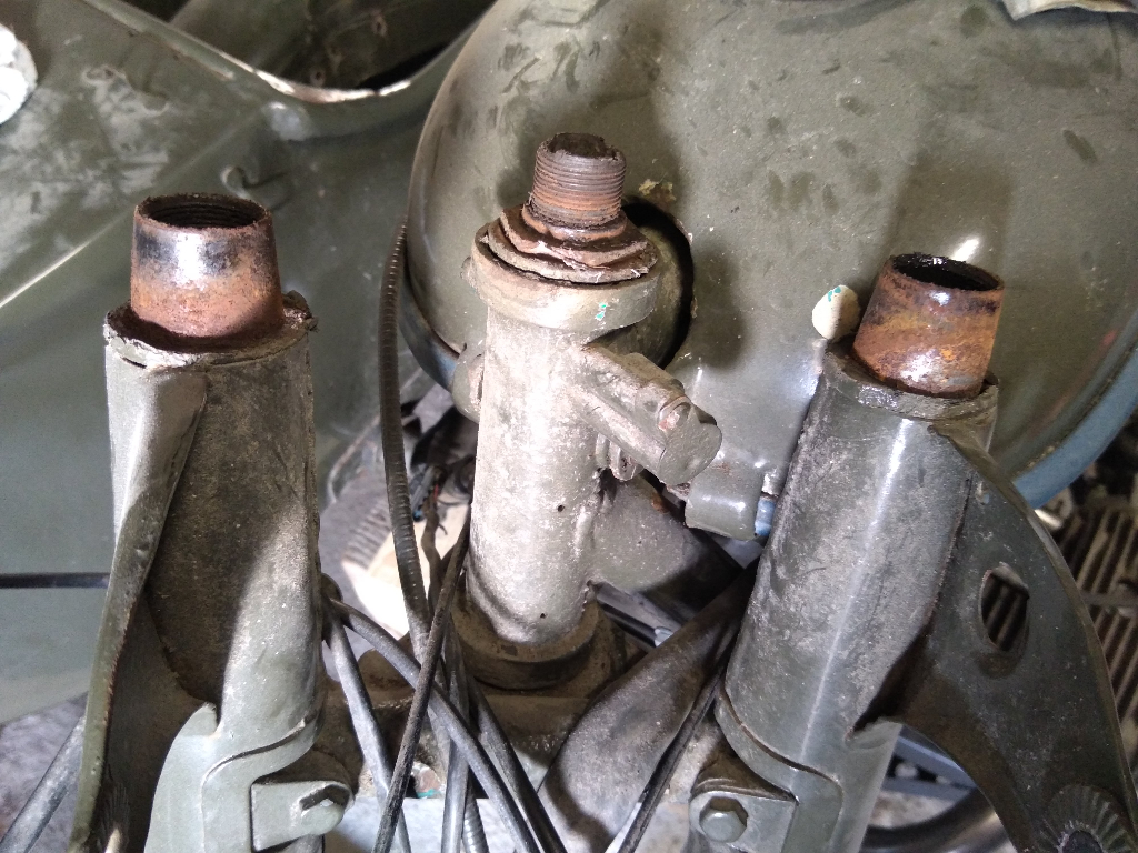 sur ma M61, le goret qui avait démonté la fourche avant moi l'avait fait au marteau (le vrai, le gros ), j'ai du changer mes tubes supérieurs