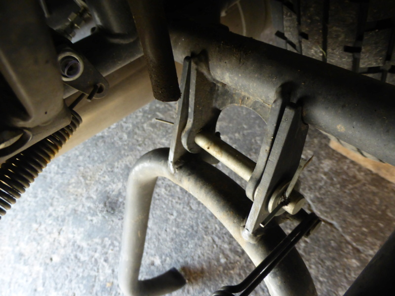 Le ressort de béquille s'accroche sur la broche de fixation moteur (entre cadre et moteur)