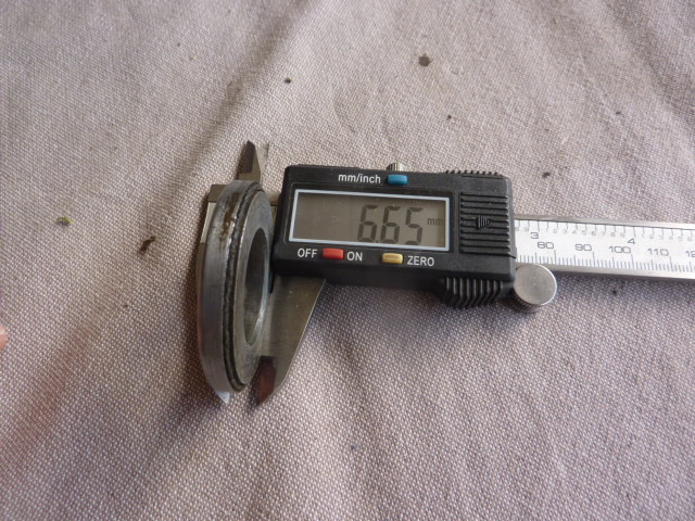 De profil, ça donne ça. l'épaisseur de la coupelle est de presque 7mm en revanche, la rondelle épaulée seule ne tient pas bien en place dans la réservation prévue pour l'ensemble (d'où l'intérêt du joint spi de 46 pour combler et faire appui).