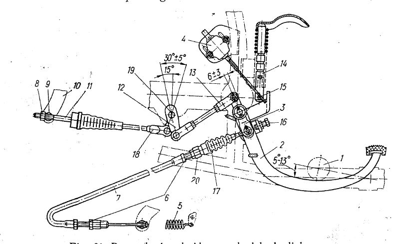 Au repos, la came arrière qui reçoit cette biellette doit être orientée environ à 30° vers l'avant.