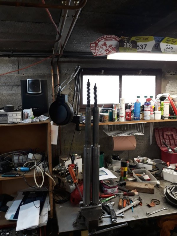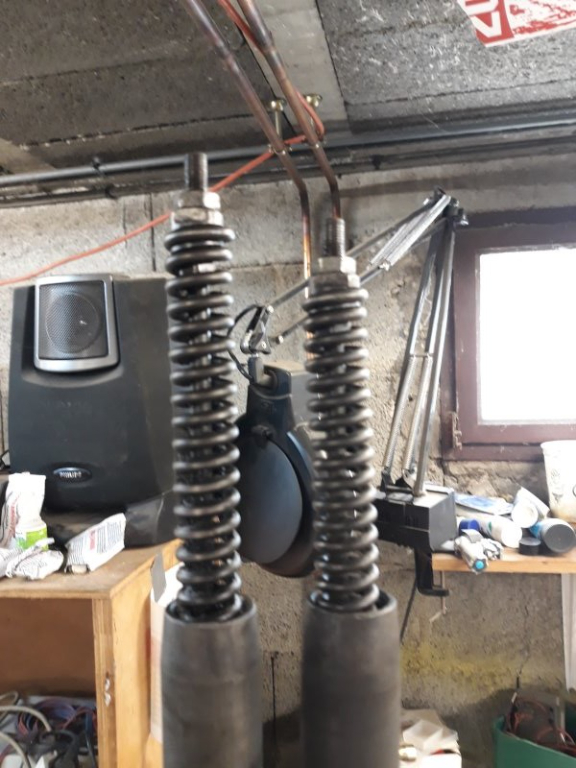 Rallonge de la tige du frein AR et correction des angles d'attaque sur les biellettes mais ça bute entre chape et bras de la pédale, va falloir resortir la meuleuse . . .
